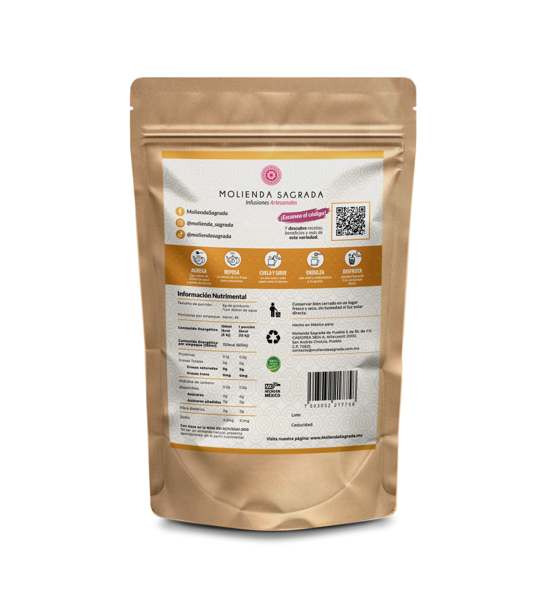 Sencilla, honesta y efectiva, Manzanilla TBC es una infusión esencial que honra lo clásico con la calidad que distingue a Molienda Sagrada.
