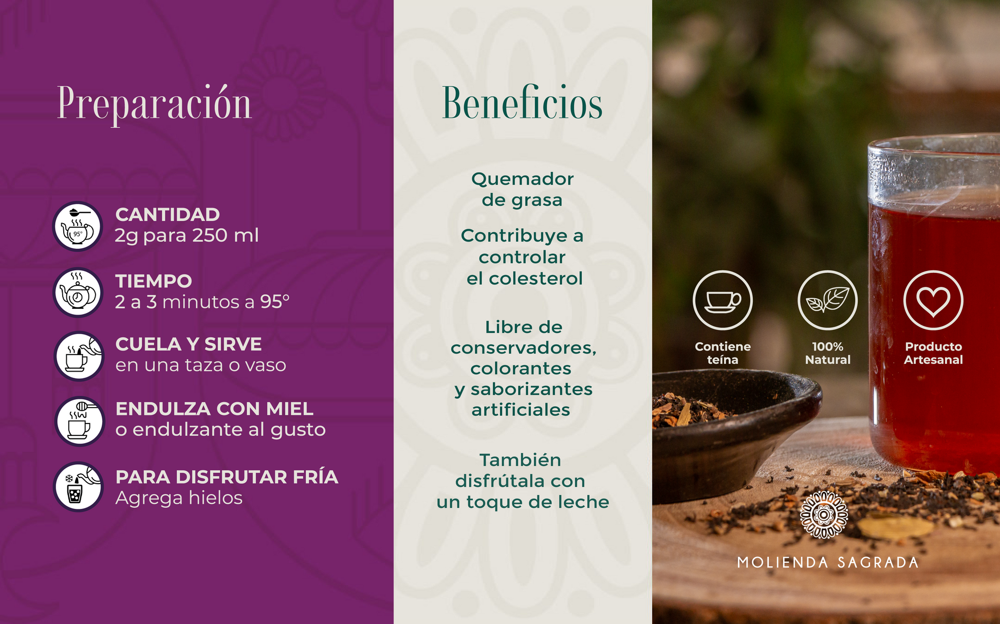 Con un equilibrio perfecto entre lo especiado y lo revitalizante, el Masala Chai es ideal para reconfortar el cuerpo y la mente, especialmente en días fríos o cuando necesitas una dosis cálida de energía y bienestar.